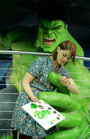 Marie Chandler paints Hulk’s nails in preparation for the official opening of Marvel Super Heroes 4D – a new experience at London’s Madame Tussauds which includes a specially commissioned animated 3D Marvel film with added high impact ‘4D’ effects, interactive themed areas and startlingly realistic wax figures. PRESS ASSOCIATION Photo. Picture date: Wednesday June 2, 2010. The Super Hero wax figures include the Invisible Woman (as portrayed by Jessica Alba), Wolverine (as portrayed by Hugh Jackman), Nick Fury (as portrayed by Samuel L Jackson), Ironman, Spider-Man, and a 4.5 metre tall Hulk. The new experience is open seven days a week and entry is included in admission to Madame Tussauds. Photo credit should read: Geoff Caddick/PA Wire